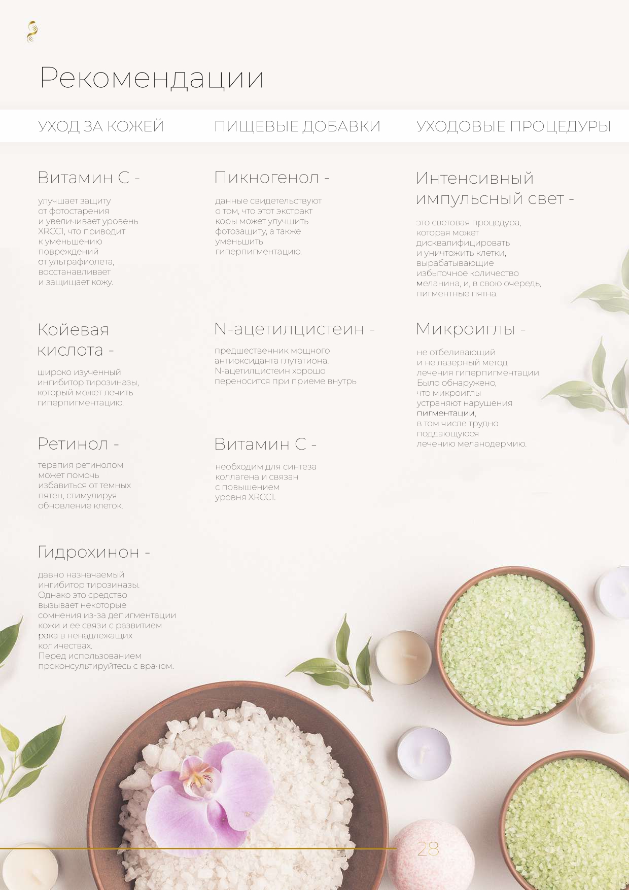 - пищевых добавок и витаминов для внутренней поддержки здоровья;